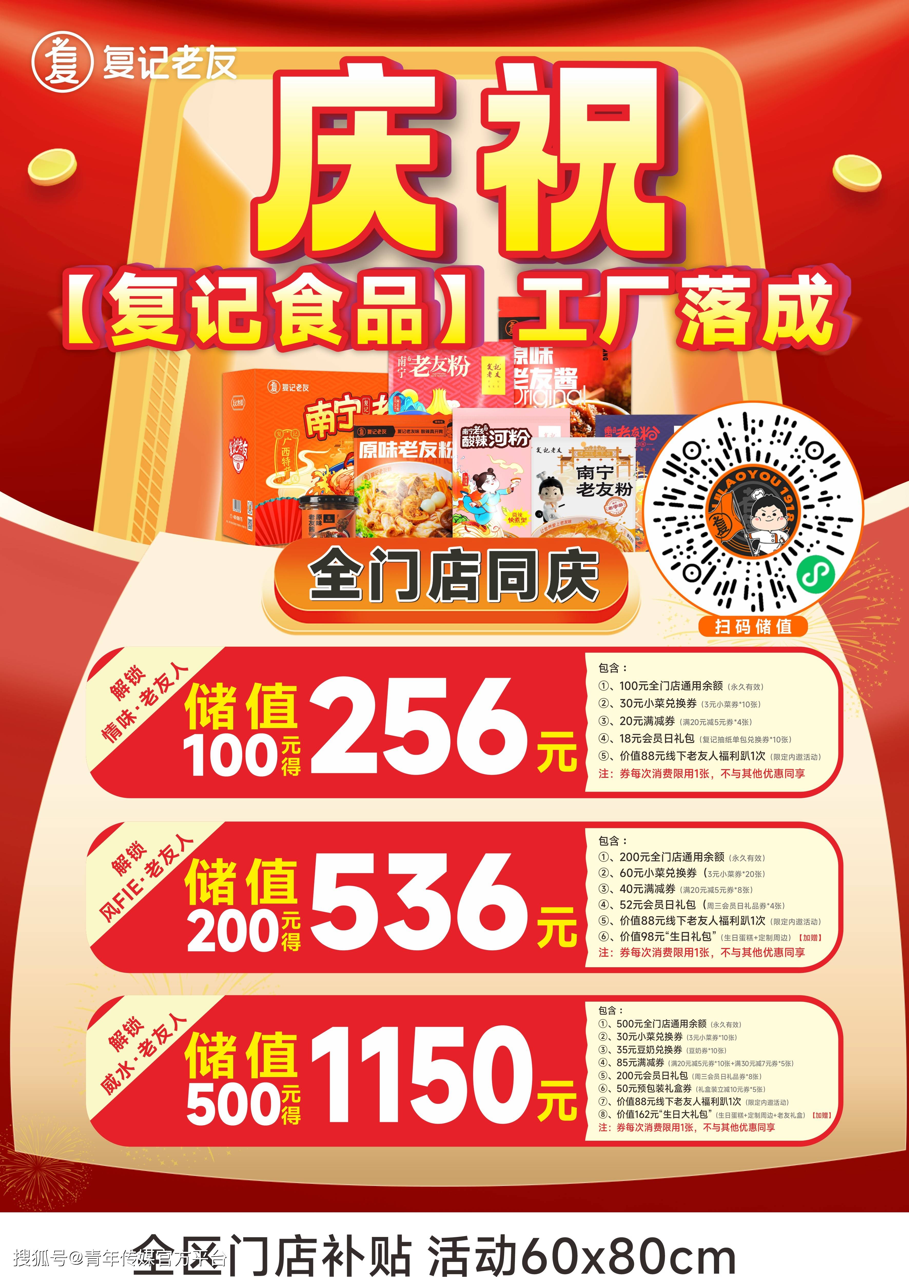 經(jīng)典產(chǎn)品:海報(bào)展示了復(fù)記食品的經(jīng)典產(chǎn)品,如老友粉、酸辣河粉及原味老友粉,吸引食客目光。